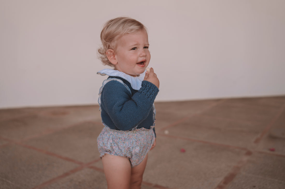 Cpota de punto color azul con detalle de ochitos, ideal para combinar con cualquiera de nuestras...