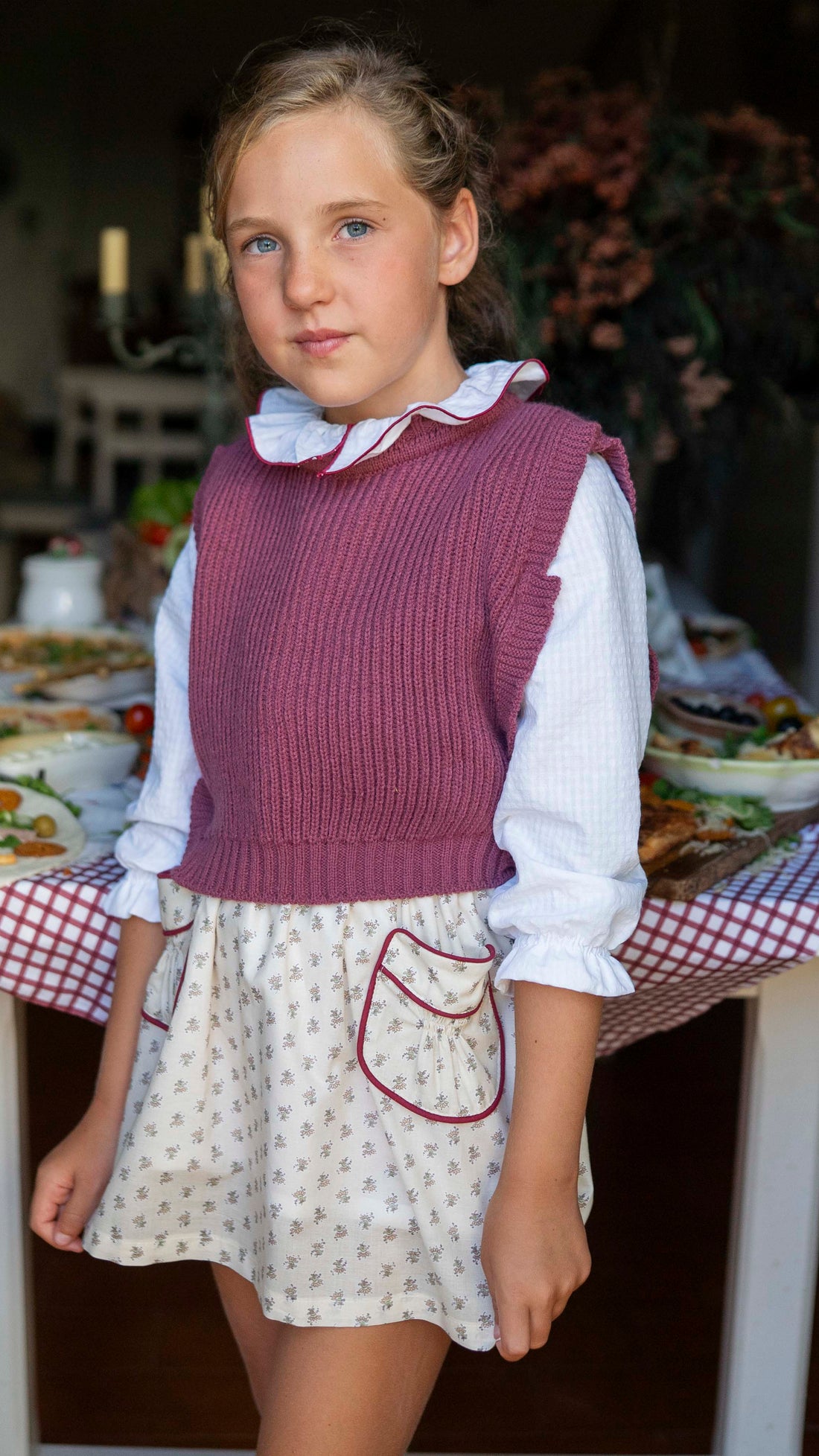 Chaleco sin mangas de punto color guinda con detalle de lazos en los laterales, ideal para...