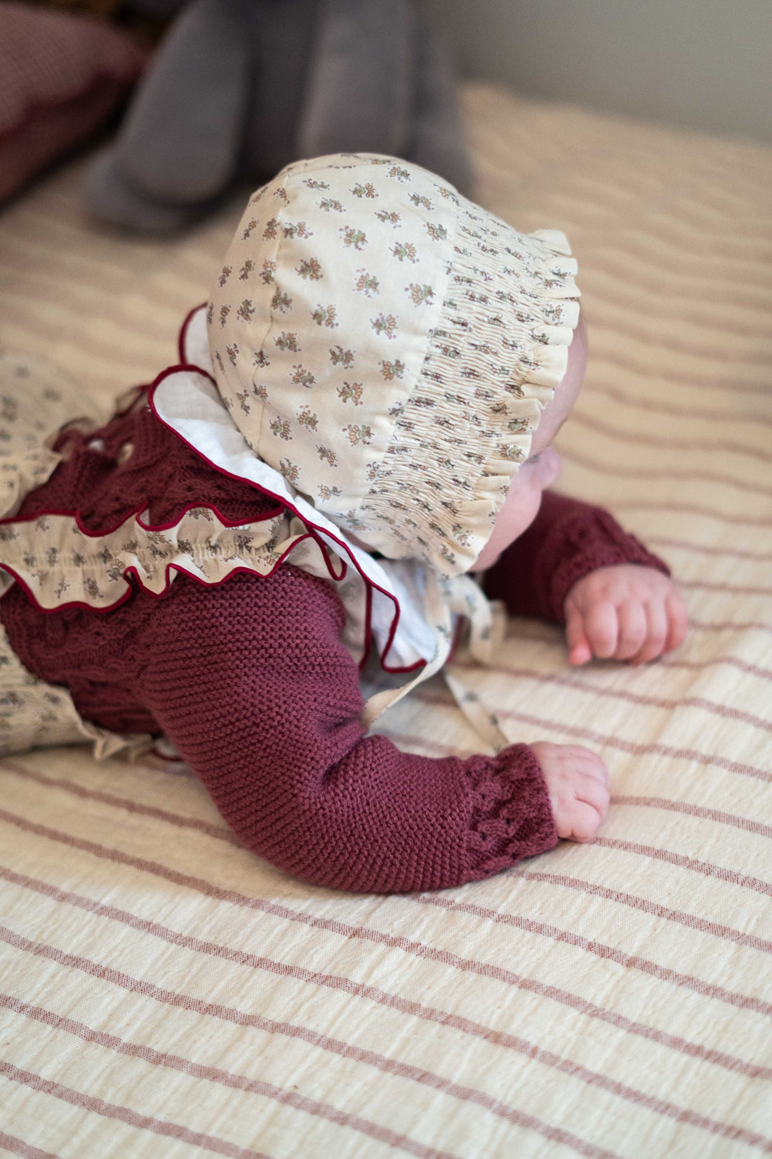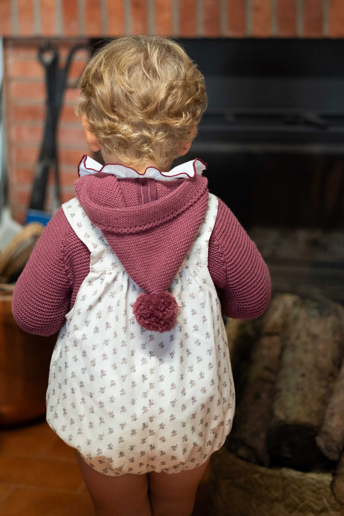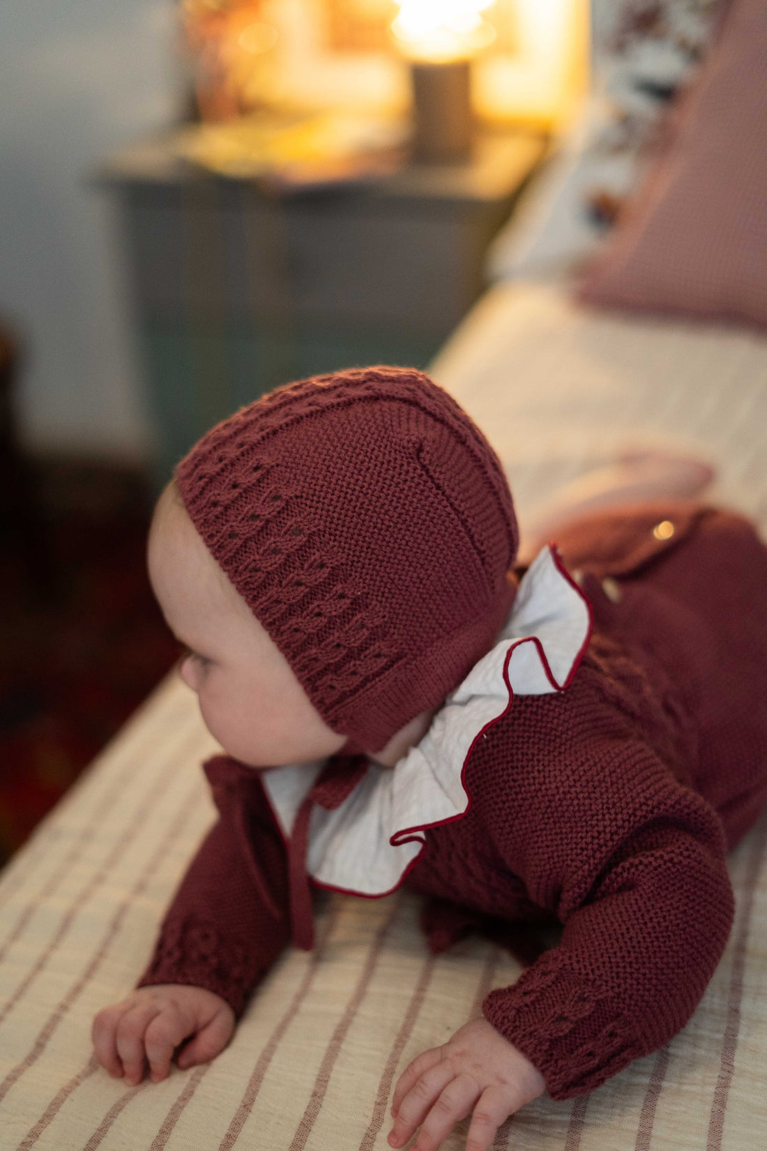 Capota de punto color guinda con detalle de ochitos, ideal para combinar con cualquiera de...