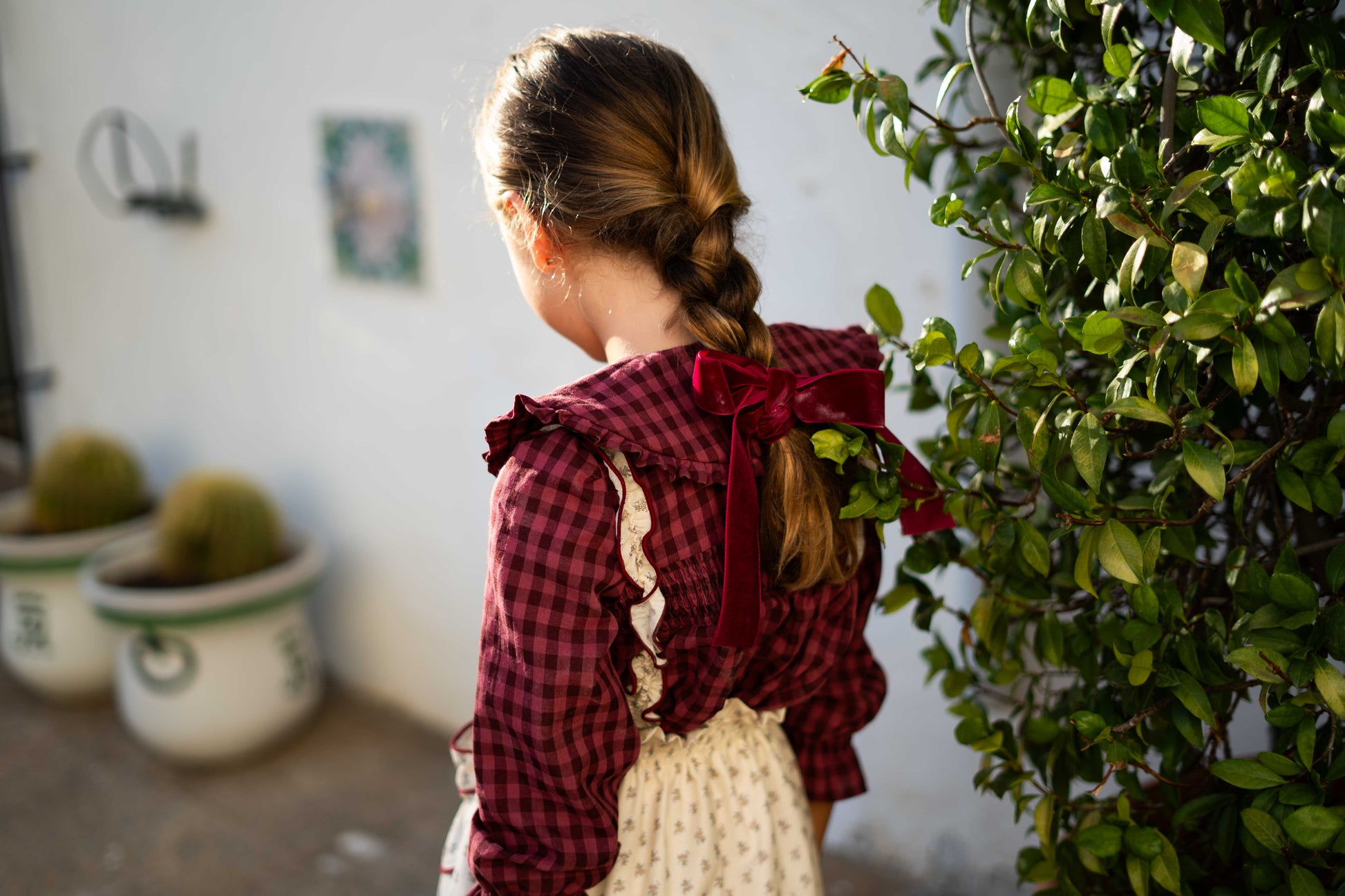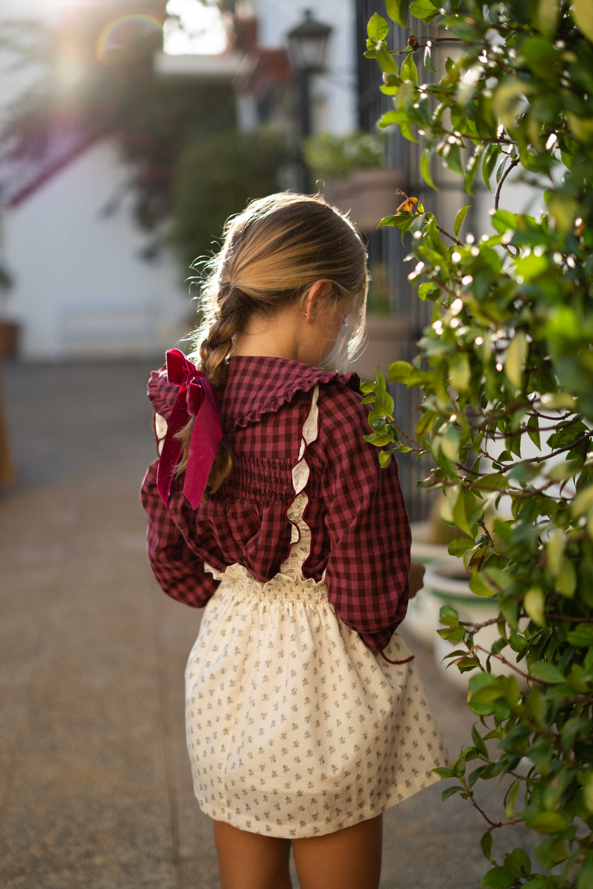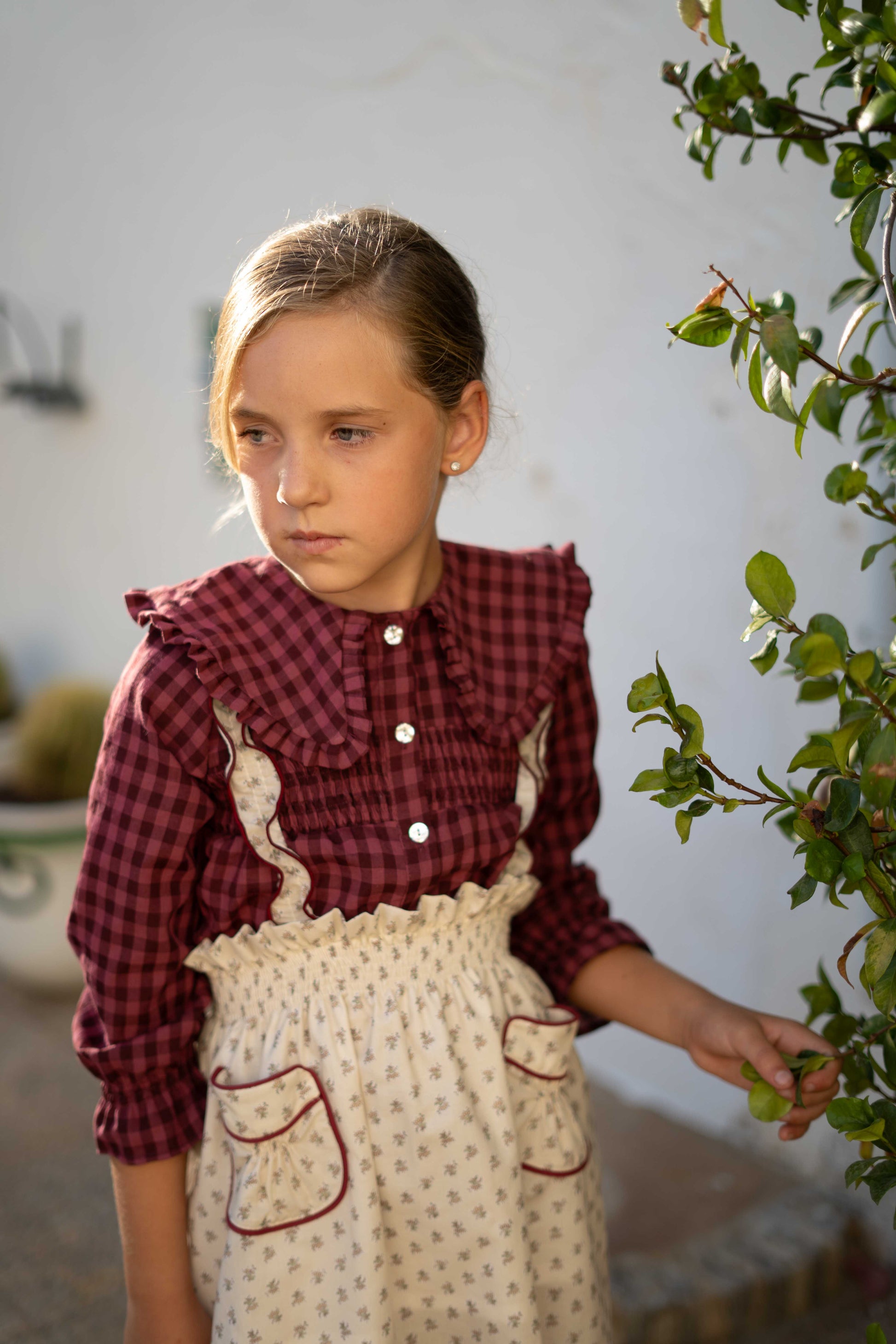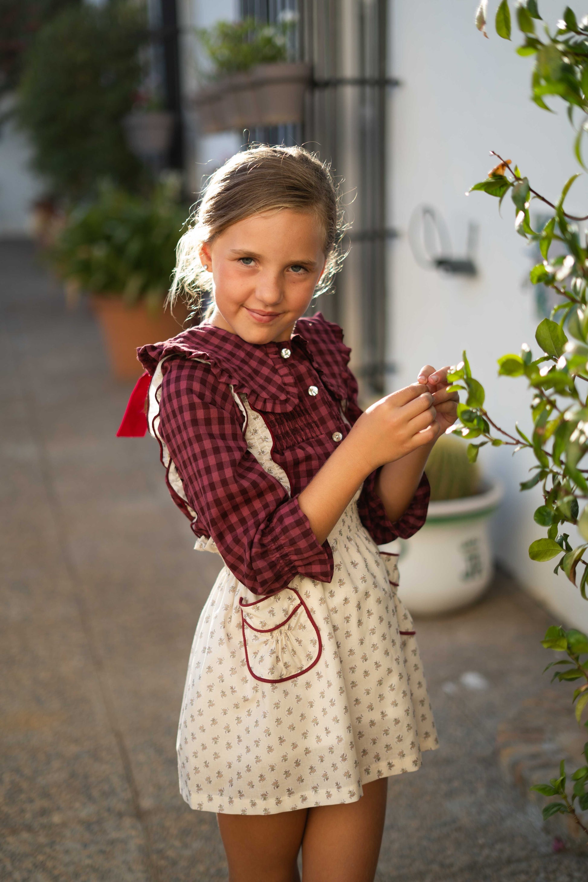 Una prenda con mucho encanto, confeccionada en tejido 100% algodón con cuadro vichy en tono guinda.
