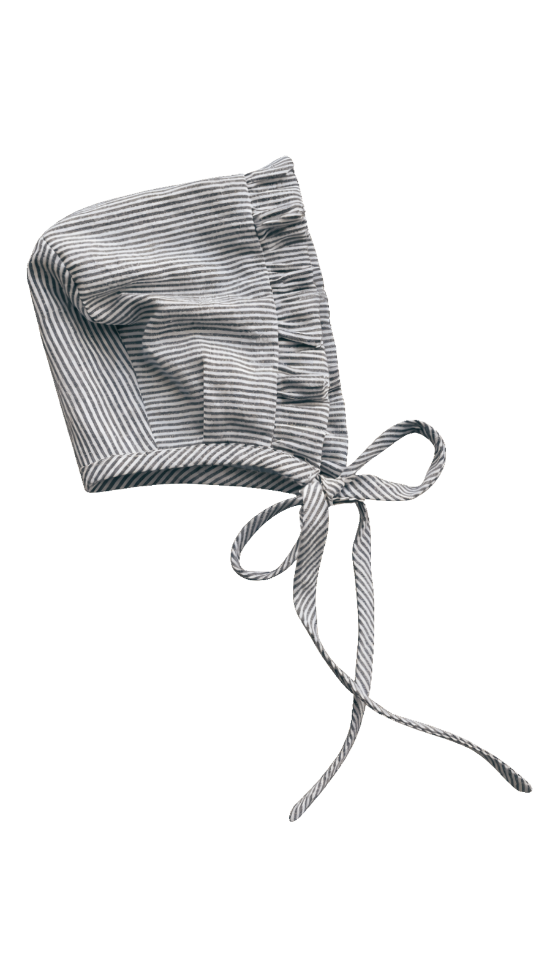 Una capota ideal para completar el look de los más pequeños y dar ese toque tan especial a cualquier conjunto. Confeccionada en tejido de rayita fina 100% algodón en tono carbón suave, sigue la misma línea delicada y cuidada de toda la colección Soho.