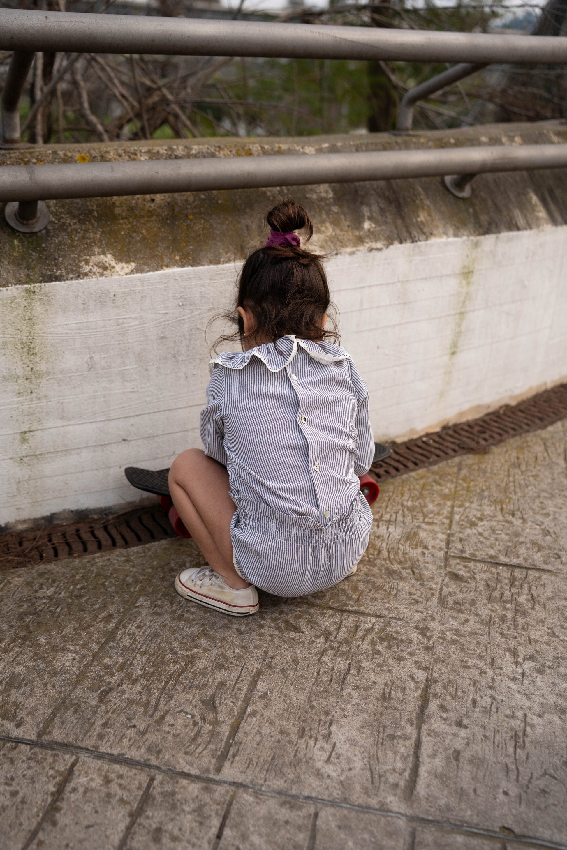 Un clásico Mûnnu lleno de encanto. El básico más ideal, confeccionado en tejido de algodón 100%, con estampado de raya fina en tono carbón.