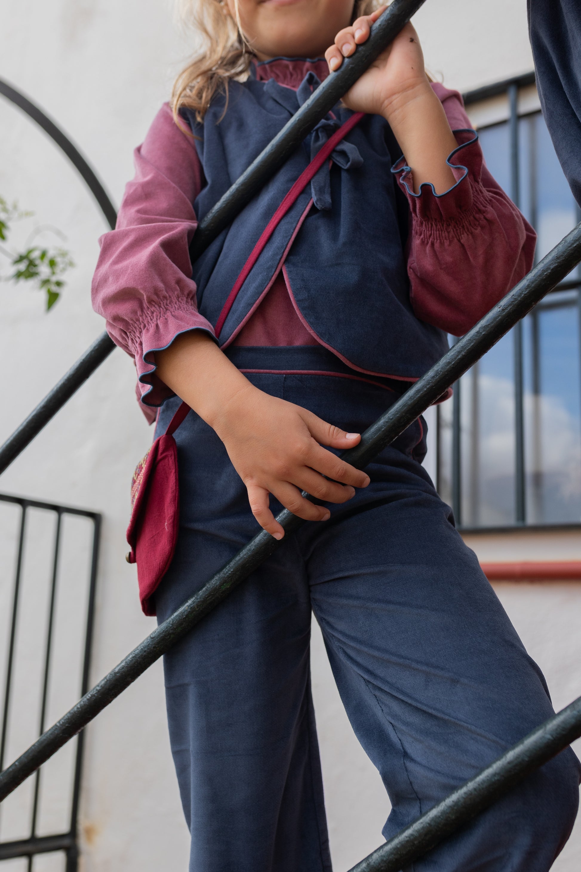 Combinado con la camisa Velvet Guinda y chaleco, forma un conjunto de los que no pasan desapercibidos — cómodo, elegante y con ese aire artesano que tanto nos representa.