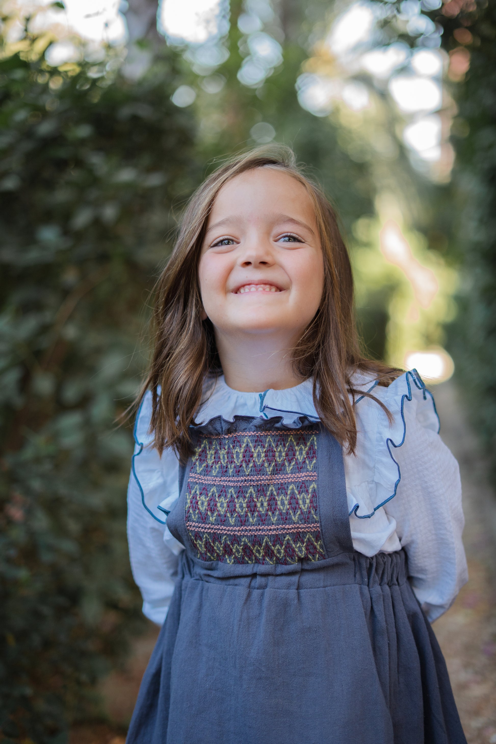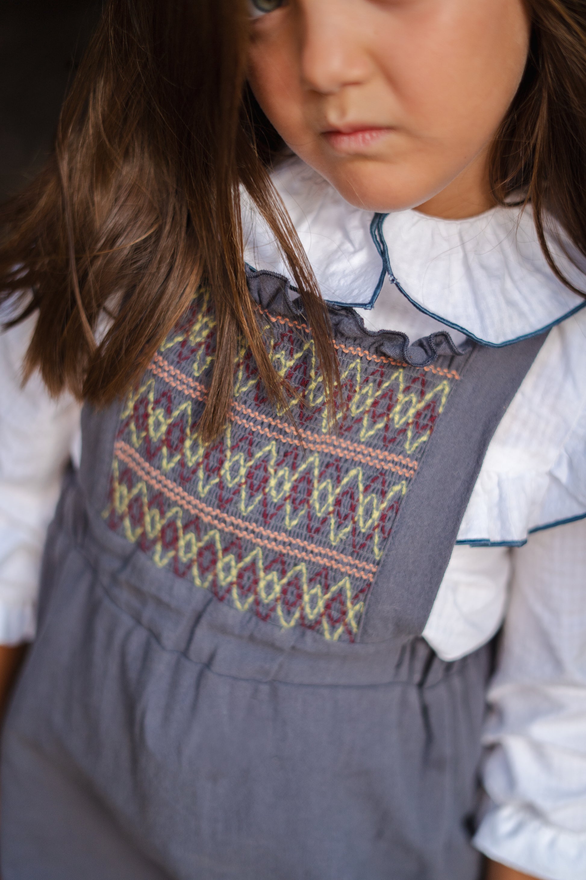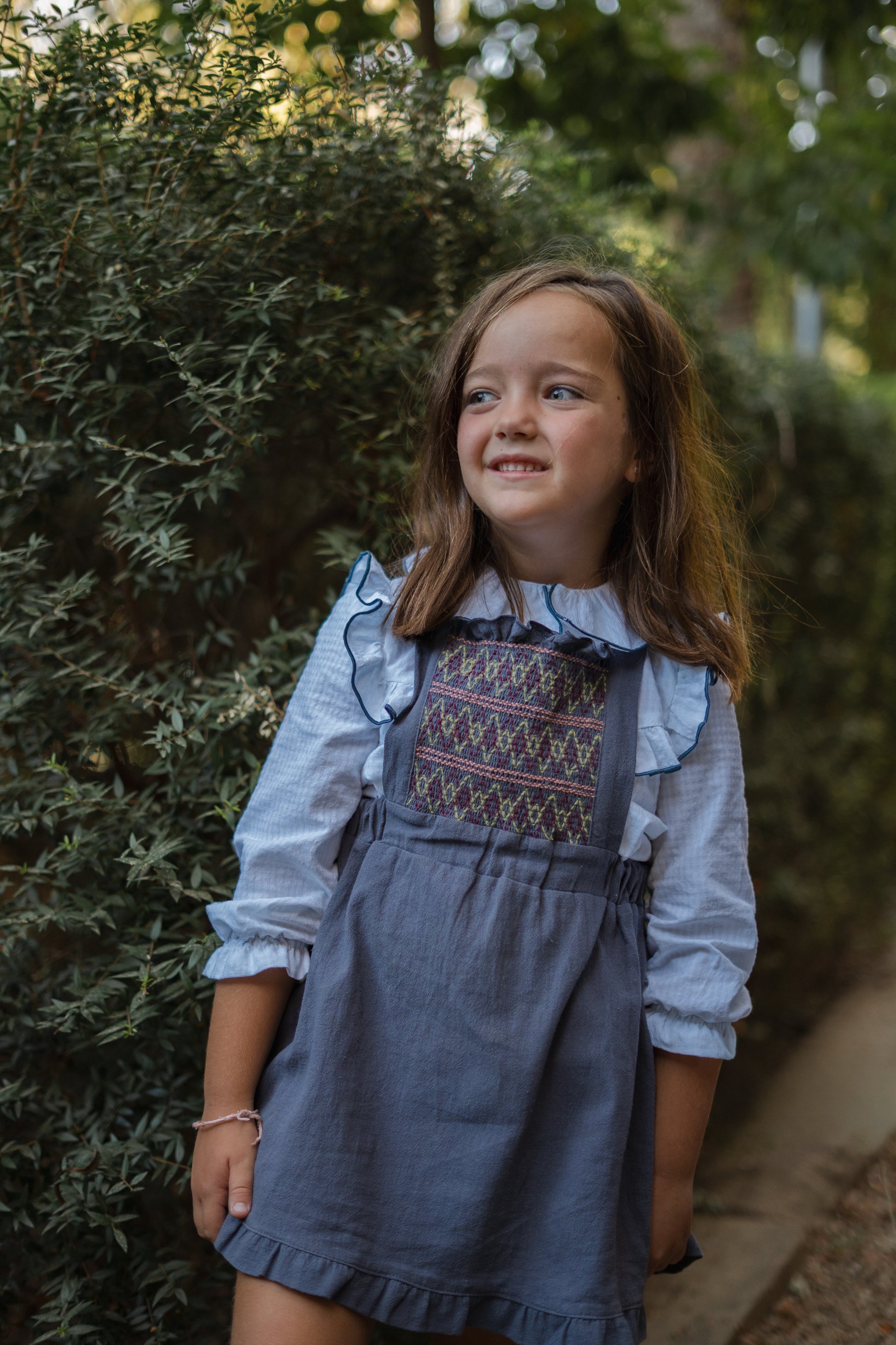 El vestido más especial de la colección. Confeccionado en 100% algodón, combina un diseño clásico con detalles únicos. Su pechera bordada a mano en nido de abeja y los volantes con vivo al tono hacen de esta prenda una auténtica joya.